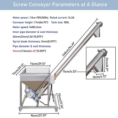 oem Electric Screw Conveyor Inclined Spiral Auger Screw Conveyor Pipe Auger Feeder Conveyor Powder Particles Loading Machine 1.7m Conveyor Height 1