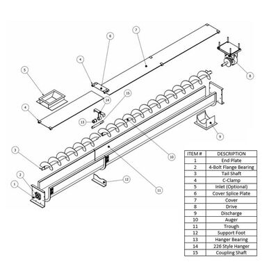 U- আকৃতির Trough ডিজাইনঃএটি traditionalতিহ্যবাহী সিলিন্ড্রিকাল স্ক্রু কনভেয়রগুলির তুলনায় উচ্চতর ক্ষমতা সরবরাহ করে এবং সিলড টিউব কনভেয়রগুলির তুলনায় পরিদর্শন এবং পরিষ্কারের জন্য সহজ অ্যাক্সেস সরবরাহ করে।