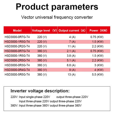 | নামমাত্র শক্তি | 0.75KW - 5.5KW |